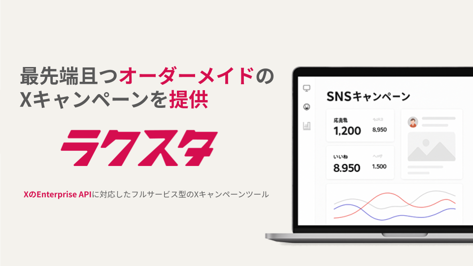 SNSキャンペーンで成果を上げたいと考えている方は、ぜひ「ラクスタ」にご相談ください。貴社のマーケティング目的に最適化した施策設計をご提案します。